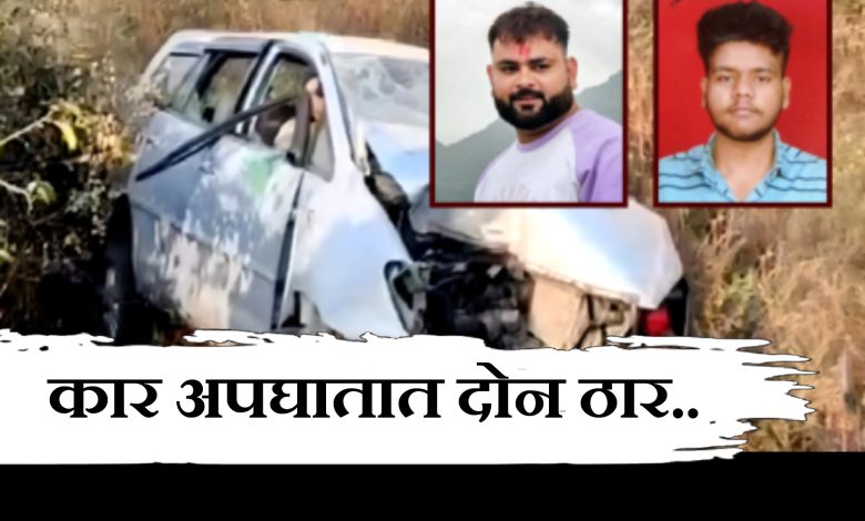 मृत व जखमी सर्व जळगावमधील पिंप्राळा उपनगरातील रहिवासी आहेत. श्रीरंग सुरेश पाटील (२७) आणि प्रसन्न रवींद्र निमजे (२१, दोन्ही रा. पिंप्राळा, जळगाव), अशी अपघातातील मृतांची नावे आहेत. रोहित सोनार (२३), निखिल कच्छवा (२५), अनिकेत कोळी (२२), निलेश वाघ (२३, सर्व रा.पिंप्राळा), अशी गंभीर जखमी तरूणांची नावे आहेत. श्रीरंग पाटील, प्रसन्न निमजे आणि इतर पाच तरूण इनोव्हा कारने पाचोरा तालुक्यातील नाचणखेडा येथे गुरूवारी सायंकाळी हळदीच्या कार्यक्रमासाठी गेले होते. हळदीचा कार्यक्रम आटोपल्यावर घराकडे परत येत असताना शुक्रवारी पहाटे दोनच्या सुमारास पाचोरा–जळगाव रस्त्यावरील बिल्दी फाट्याजवळ अचानक चालकाचा वाहनावरील ताबा सुटला. त्यामुळे भरधाव कार थेट रस्त्याच्या कडेला दोन ते तीन वेळा पलटी झाली.