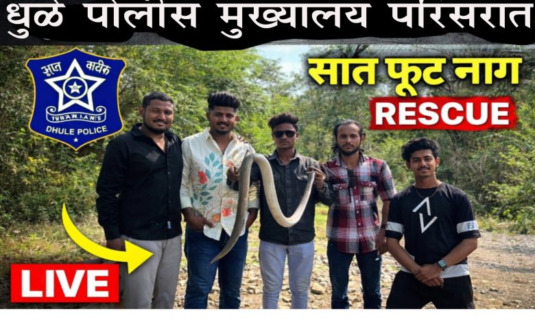 धुळे पोलीस मुख्यालय परिसरातून ७ फुटी नागाचे रेस्क्यूधुळे – शहरातील पोलीस मुख्यालय परिसरात सोमवारी दुपारी सुमारे ३ वाजेच्या सुमारास मोठा नाग आढळून आल्याने काही काळ परिसरात भीतीचे वातावरण निर्माण झाले होते. याबाबत नरेश शिरसाठ यांनी तात्काळ सर्पमित्र आयान शेख यांना फोन करून माहिती दिली.